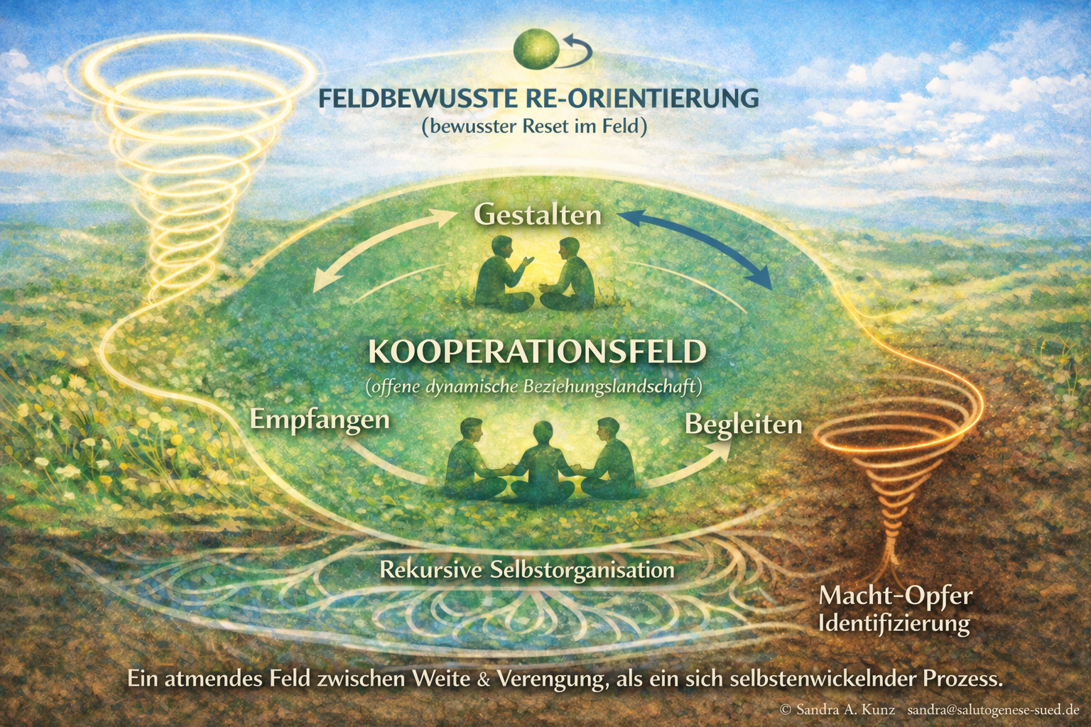 Kooperation erscheint dabei nicht als zu erzeugender Zustand, sondern als dynamische Feldqualität, die sich im Zwischenraum zwischen Personen fortlaufend konfiguriert.